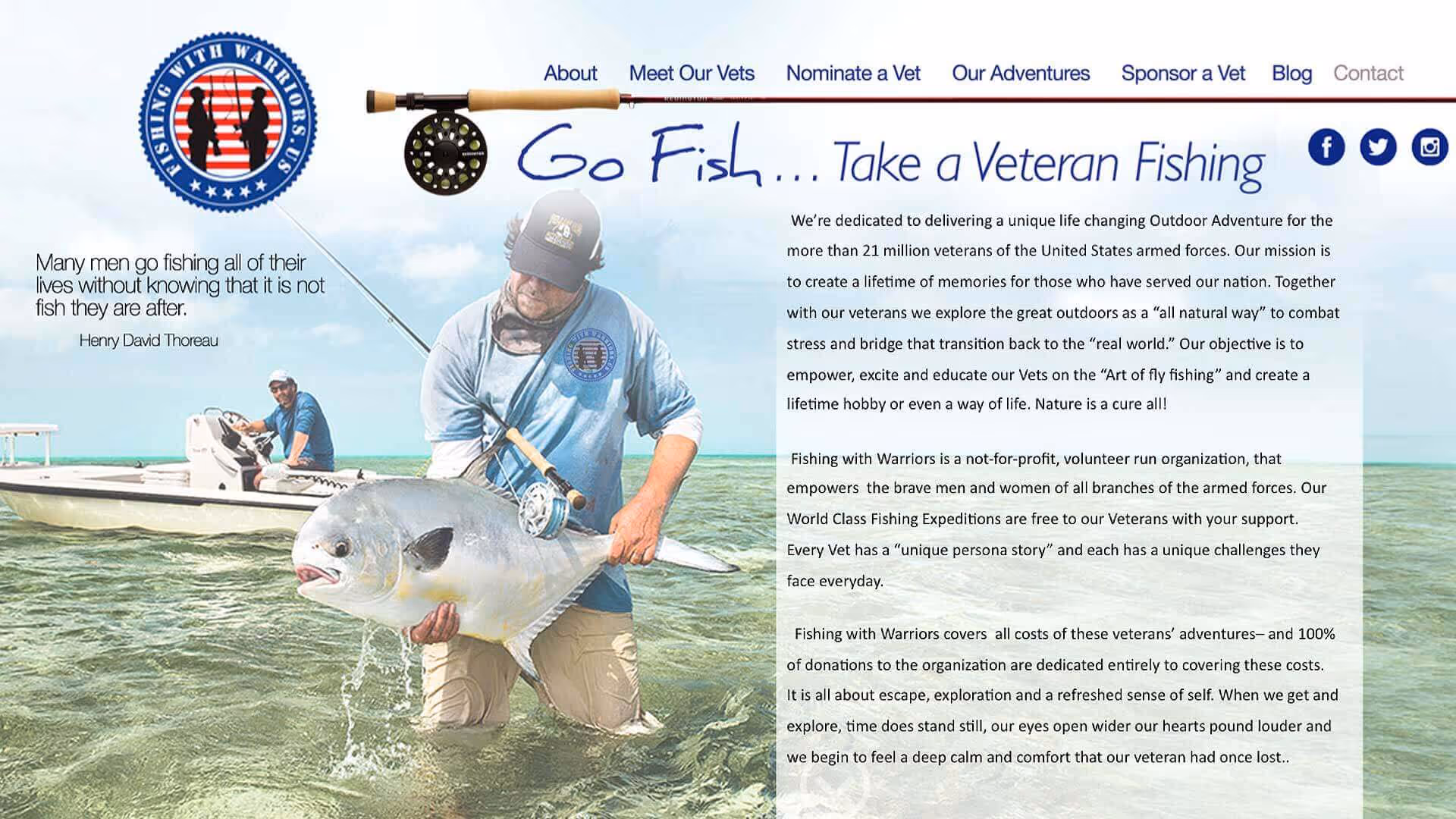 Fishing with Warriors engaged Plumb to help re-brand and rejuvenate their website and elevate their mission. Fishing with Warriors connects Military Veterans with world-class sport activities like fishing at no cost to the veterans. Fishing with Warriors provides a trip of a lifetime to our deserving American Heroes. Our communications strategy was to create more awareness of the program and the benefits of an “all natural way” to combat stress and create a bridge to get our Veterans back into the real world. Our core principles where empower, excite and educate. We created opportunities for friends and family to nominate Veterans who might be reluctant to reach out for themselves. We encouraged personal connections and conversations to stimulate a deeper connection and bond, so they left the experience with more than memories of that one fish that got away. Our creative strategy was to focus on emotion and the feeling of an all-natural escape. We focused on nature and its raw power to transform us, create calm and inspire our souls. We focused on the power of friendship and sharing a common experience and creating an all-in-this-together attitude. The visuals were naturally powerful-Mother Nature does that kind of thing. We wanted to capture the pure JOY of fishing and the JOY of new Friendships. Our goal was to inspire our Veterans to Go fish, to get outside and get immersed in the natural environment.